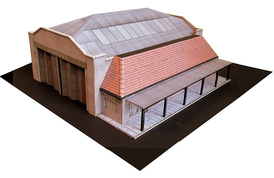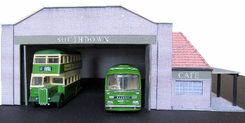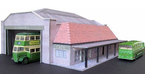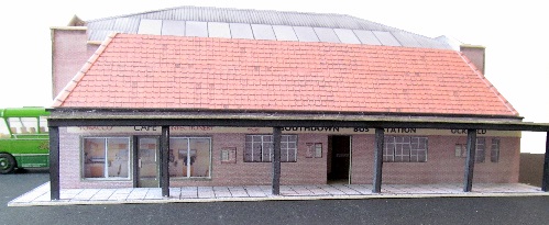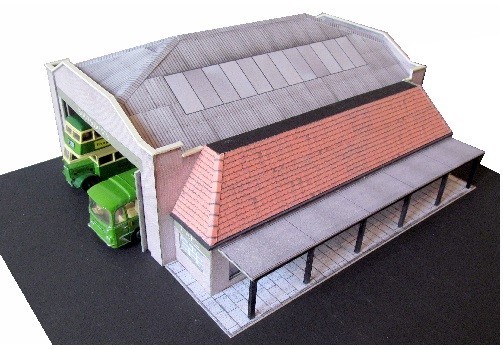 This bus depot / station is modelled on the one at Uckfield, Sussex. The full relief depot will accommodate six vehicles and has doors that may be positioned open or closed.